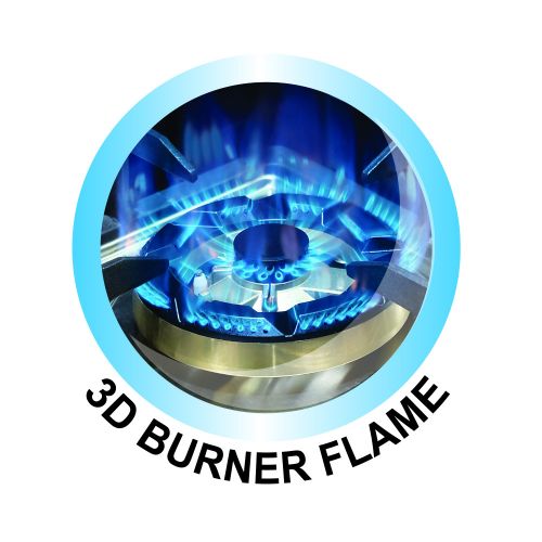 เปลวไฟทะลุ 3 มิติ คือ นวัตกรรมไฟใหม่ล่าสุด เพื่อให้เห็นถึงความแรงจริงของเปลวไฟ คงความร้อนได้ยาวนานที่สุด รับรู้ถึงอรรถรสของอาหารร้อนไม่ว่าจะเป็นภาชนะ ตื้น ลึกหนา บาง ได้อย่างชัดเจนด้วยประสิทธิภาพของความร้อนเต็มพิกัดสูงสุด
