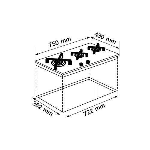 เปลวไฟซาบาฟทองเหลืองแท้จากประเทศอิตาลีหัวเตาผลิตขึ้นรูปชิ้นเดียว มาตรฐานระดับโลก หัวเตาให้ความร้อนสูงสุด 5,500 วัตต์ , หัวเตากลางให้ความร้อนสูงสุด 1,750 วัตต์ และหัวเตาขวาให้ความร้อนสูงสุด 3,000 วัตต์ เปลวไฟสีฟ้าสมบูร์แบบที่สุด
