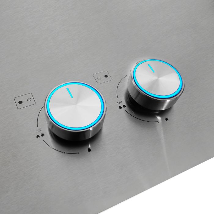ปุ่มควบคุม LUMINOUS TACTILE LED สีฟ้า ไฟส่องสว่างรอบปุ่มควบคุมเพียงแค่สัมผัสปุ่มหมุน สร้างจินตการให้คุณเนรมิตมื้ออาหารแสนอร่อยในครัวคุณ