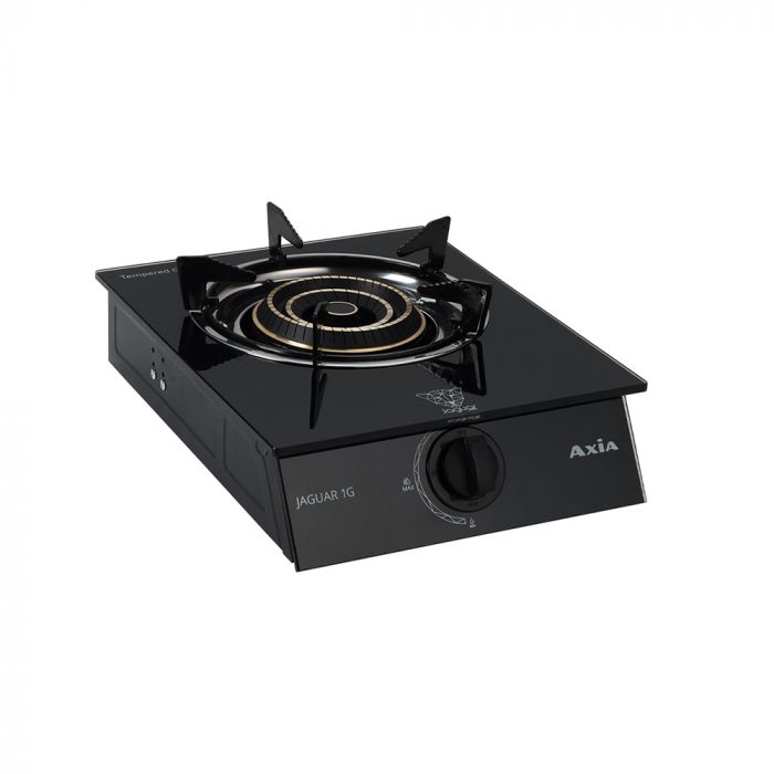 เตาแก๊สตั้งโต๊ะรุ่น JAGUAR 1G ขนาด 29 ซม. เล็กกะทัดรัด แต่แข็งแรงทดทานด้วยโครงสร้างสแตนเลส มาพร้อมกระจกนิรภัยสีดำ หัวเตาทองเหลืองให้กำลังไฟแรงสูง 5,500 วัตต์ สามารถปรับหัวเปลวไฟวงใน - วงนอกได้ ช่วยให้คุณเพลิดเพลินกับการทำอาหาร ขจัดปัญหาพื้นที่ครัวขนาดเล็ก ด้วยเตาแก๊สตั้งโต๊ะประสิทธิภาพสูง