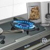 หัวเตาแก๊สทองเหลือง หัวเตาด้านซ้าย กำลังไฟ 4,500 วัตต์ เปลวไฟ 4 ชั้น หัวเตาด้านขวา กำลังไฟ 5,000 วัตต์ เปลวไฟวงแหวน 5ชั้น สามารถเลือกใช้งานได้อย่างหลากหลาย