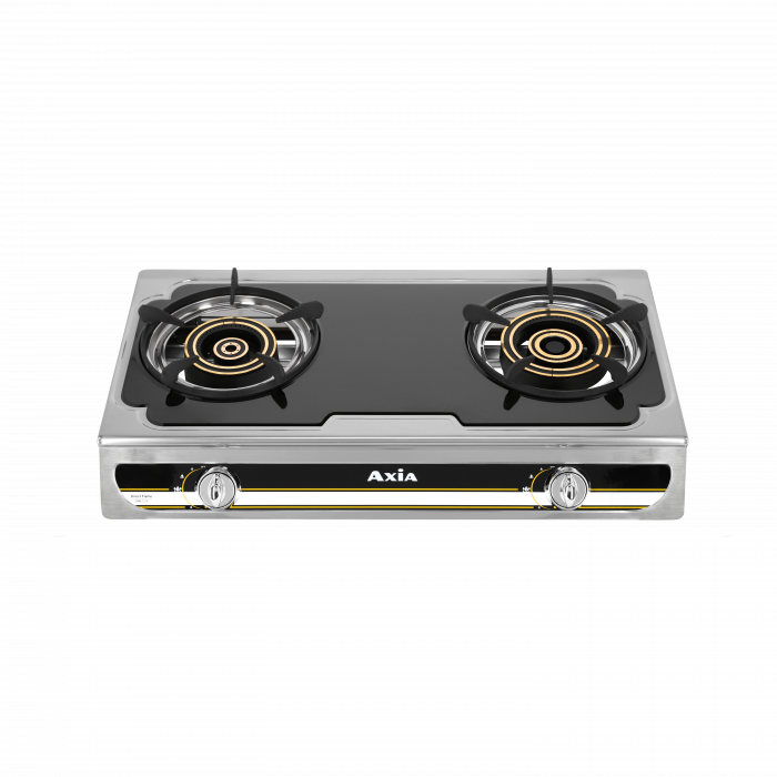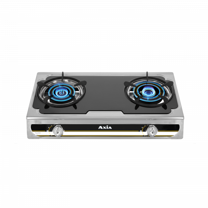 เตาแก๊สตั้งโต๊ะ ขนาด 70 ซม. 2 หัวเตาแก๊สทองเหลือง หัวเตาด้านซ้าย กำลังไฟ 4,500 วัตต์ เปลวไฟ DOUBLE RINGS 4ชั้น หัวเตาด้านขวา กำลังไฟ 5,000 วัตต์ เปลวไฟ TRIPLE RINGS 5ชั้น สามารถปรับเปลวไฟหัวเตาวงนอก-วงในได้
