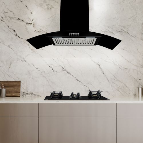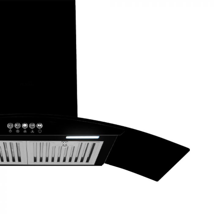 เครื่องดูดควัน หน้าจอกระจกดำสวยงามทรงโค้ง ปรับความแรงได้ 3 ระดับ กำลังดูดอากาศสูงสุด 1,200ลูกบาศก์เมตร/ชั่วโมง