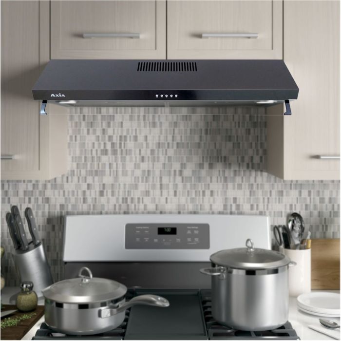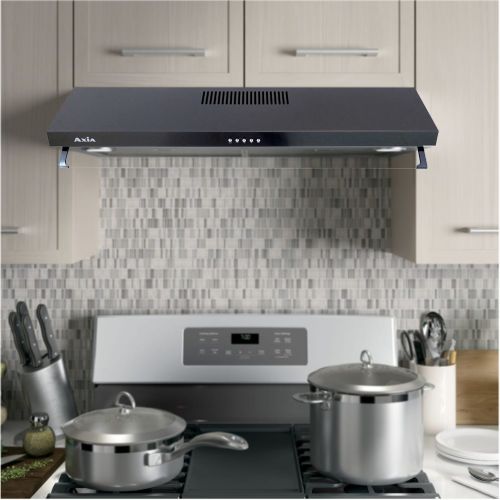 เครื่องดูดควันแบบมาตรฐาน AXIA I-NERO ซีรีส์ โครงสร้างอลูมิเนียมเคลือบสีดำปรับระดับความแรงได้ 3 ระดับ กำลังดูดอากาศสูงสุด 550 ลูกบาศก์เมตร/ชั่วโมง