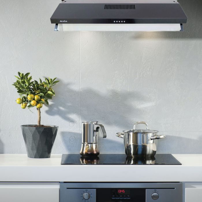 เครื่องดูดควันแบบมาตรฐาน AXIA I-NERO ซีรีส์ โครงสร้างอลูมิเนียมเคลือบสีดำปรับระดับความแรงได้ 3 ระดับ กำลังดูดอากาศสูงสุด 550 ลูกบาศก์เมตร/ชั่วโมง