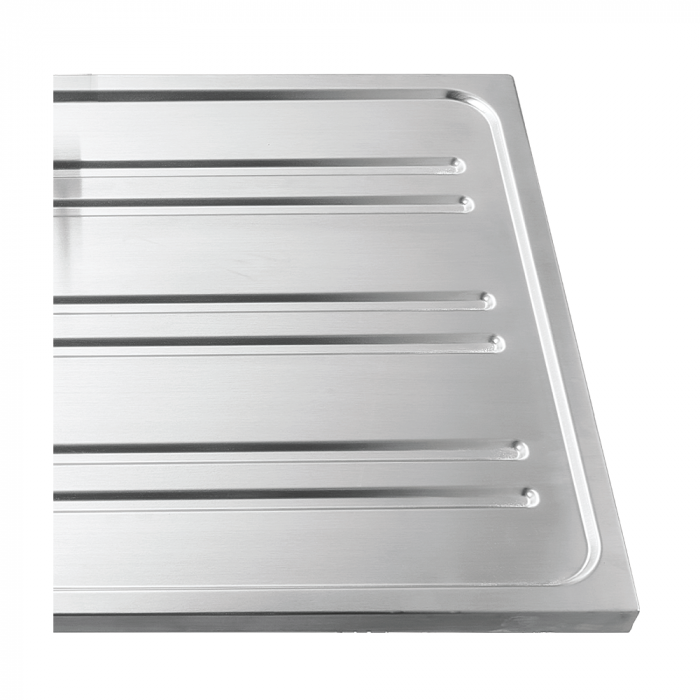 อ่างล้างจานเนื้อสัมผัสเรียบเนียน โดดเด่นด้วยรูปลักษณ์ที่ทันสมัยสะดุดตา มาพร้อมอ่างที่มีความกว้างและยังมีหลุมที่ออกแบบมาลึกพิเศษ ขนาด 20.5 ซม. จุภาชนะได้มากขึ้น พร้อมที่พักอ่างลายใหม่ เส้นสายเรียวเล็ก แต่สามารถระบายน้ำออกจานที่พักจานได้เป็นอย่างดี และเรายังเลือกใช้วัสดุในการผลิตคุณภาพสูงอย่างสแตนเลสสตีลอย่างดี มีความแข็งแรงทนต่อการกัดกร่อนสูงใช้งานได้ยาวนาน