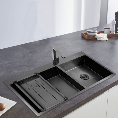 อ่างล้างจานสแตนเลสนาโน สีดำ เคลือบผิวด้วยนวัตรรมกรรมนาโนเทคโนโลยีพิเศษ เพิ่มความคงทนต่อพื้นผิวสแตนเลส ช่วยยืดอายุการใช้งาน ป้องการรอยขีดข่วน ลดรอยคราบน้ำ ทนต่อการกัดกร่อน มีความทนทานสูง เป็นมิตรต่อสิ่งแวดล้อมและทำความสะอาดง่าย ผสมผสานเทคโนโลยีเข้ากับอ่างล้างจานอย่างลงตัว