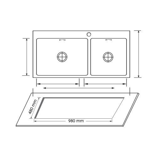 • ขนาดอ่างล้างจาน กว้าง 100.0 ซม. x ยาว 50.0 ซม.