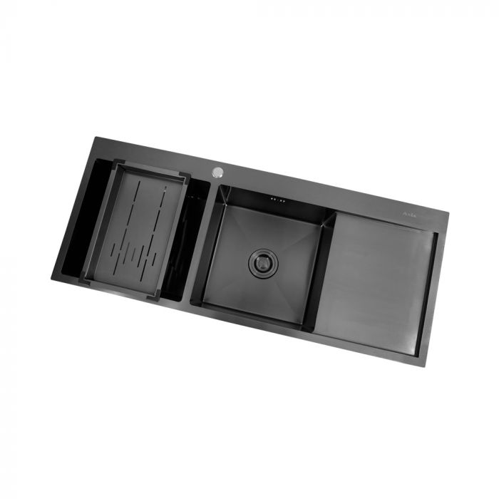 อ่างล้างจานสแตนเลสนาโน สีดำ เคลือบผิวด้วยนวัตรรมกรรมนาโนเทคโนโลยีพิเศษ เพิ่มความคงทนต่อพื้นผิวสแตนเลส ช่วยยืดอายุการใช้งาน ป้องการรอยขีดข่วน ลดรอยคราบน้ำ ทนต่อการกัดกร่อน มีความทนทานสูง เป็นมิตรต่อสิ่งแวดล้อมและทำความสะอาดง่าย ผสมผสานเทคโนโลยีเข้ากับอ่างล้างจานอย่างลงตัว