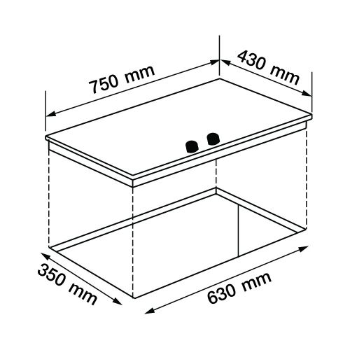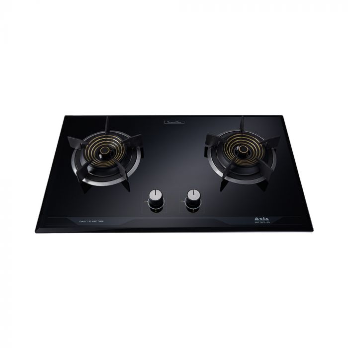 Gas cooktop, size 75 cm, 2 brass burners. The burner is durable and has a maximum heat of 5,500 watts. It comes with a straight blue