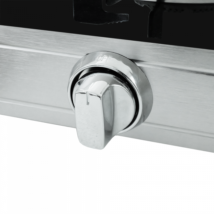 ฐานเตาแก๊สโดดเด่นมีความแข็งแรงทนทานสูงเป็นพิเศษ มาพร้อมพื้นผิวเตากระจกนิรภัยสีดำปลอดภัยทนความร้อนสูง แข็งแกร่งที่สุด