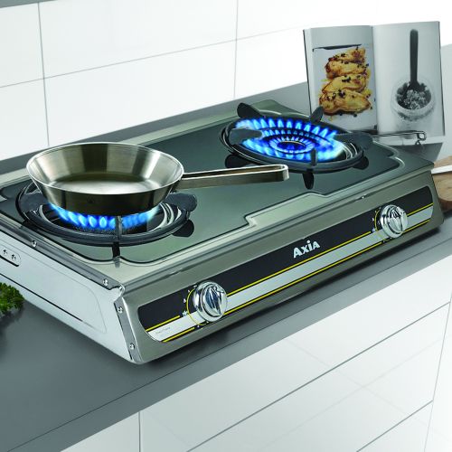 Table Gas Cooktop 70 cm comes with 2 head brass gas stove that it can adjust the outer-inner flame matching to the cooking process.