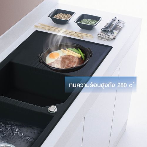 AXIA granite sink came with a beautiful black colour that can withstand high temperatures up to 280c and is extremely resistant to impact and scratches.